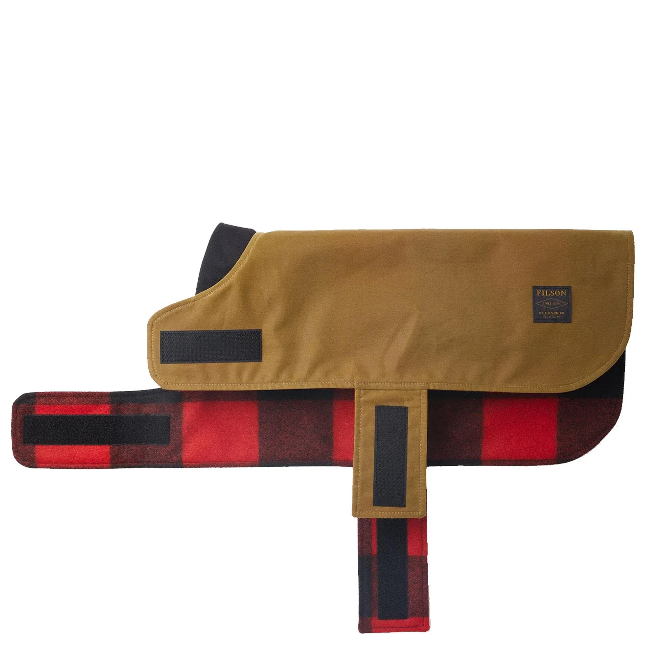 Ideal for keeping cold rain off you pup’s back on the daily walk, the Shelter Cloth Dog Vest is made with Filson’s signature midweight waxed cotton for outstanding water resistance. Reversible, it can also be worn with the Mackinaw Wool side facing out. On/off is quick and easy with the sturdy hook-and-loop fasteners on the chest and front straps. The neck is lined with ultrasoft sueded-cotton Moleskin for added comfort and to reduce risk of chafing.